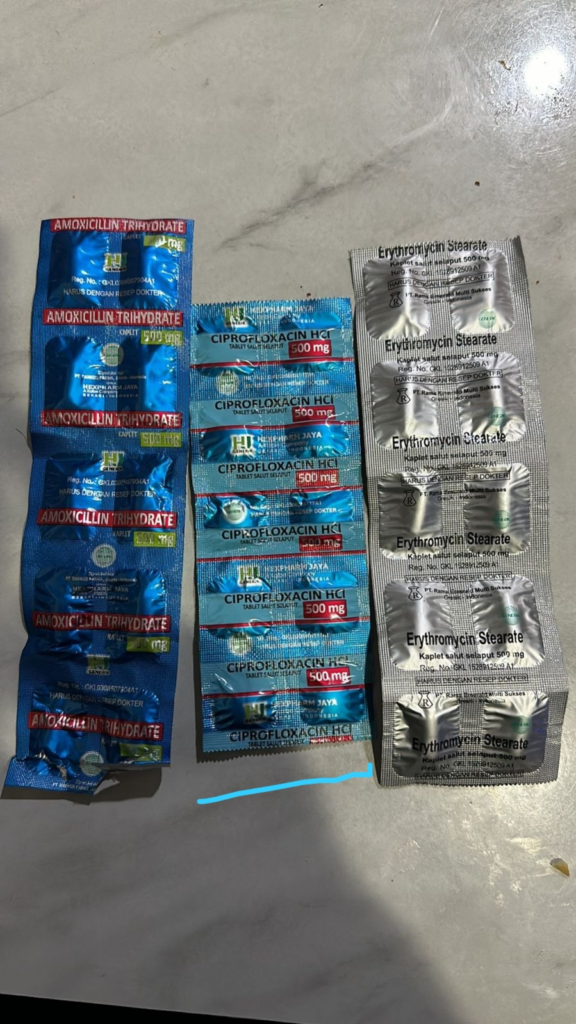 1 table 500mg Cipro larutin ke 50ml air RO, Nanti dapet takeran 10mg / ml larutan cipro