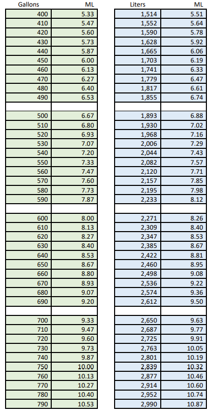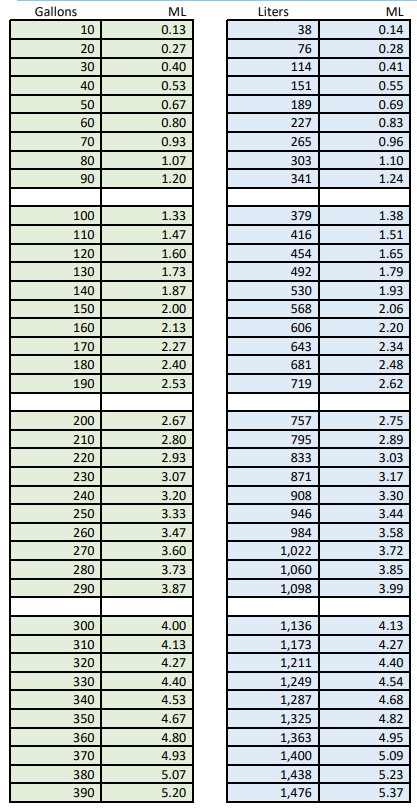 Gallons Tank size/15 x .2 = Daily Dosing amount in ML